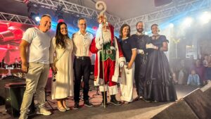 Um dos momentos mais aguardados da noite foi a chegada do Papai Noel, acompanhada de muitas crianças e famílias, que seguiram o trajeto do bom velhinho até a praça. Em seguida, o acendimento das luzes transformou o espaço, marcando oficialmente o início do período natalino no município.