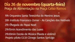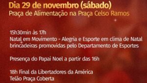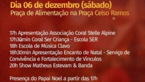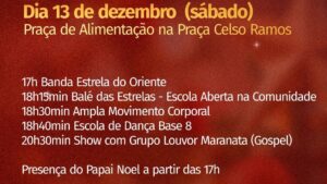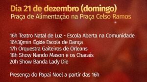 Todas as atividades acontecerão na Praça Celso Ramos, em diferentes datas, reunindo atrações para todas as idades e fortalecendo o clima natalino na cidade.