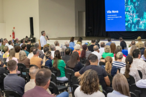 Durante o evento, o prefeito Fernando Cruzetta detalhou as ações previstas na primeira etapa do programa, que contempla mais de 40 obras em diferentes localidades do município.