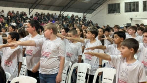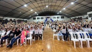 Em um dos momentos mais importantes do evento, o prefeito Fernando Cruzetta transmitiu o cargo à vice-prefeita Leonete Librelato, que assumirá o comando do Executivo Municipal pelos próximos 15 dias.