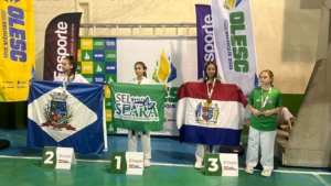 A atleta Pietra, da modalidade Taekwondo, subiu ao pódio e marcou o nome de Orleans na competição, representando com garra e dedicação o município.